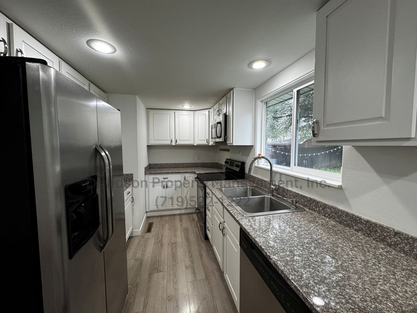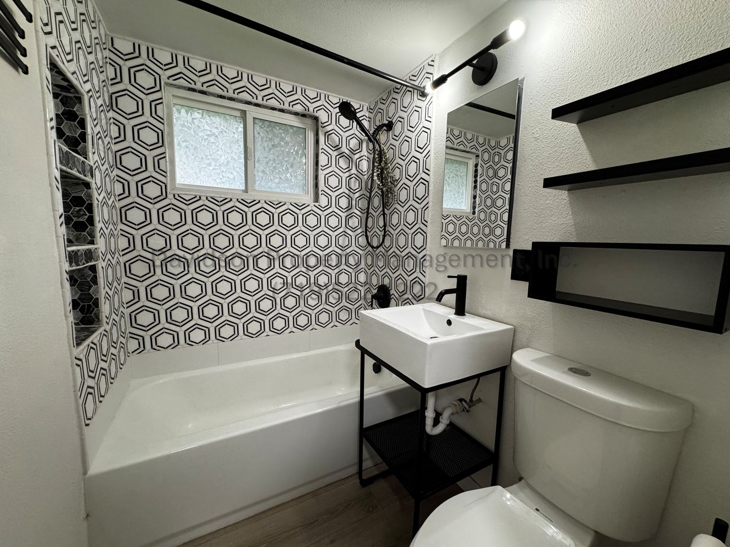 Step inside this charming home and you’ll be welcomed by a bright and inviting living room that seamlessly flows into the cozy dining nook and efficient galley style kitchen. The kitchen boasts crisp white cabinetry and sleek stainless steel appliances that give it a modern touch. With plenty of cabinet and counter space this kitchen makes meals a breeze. Just down the hall, you’ll find three generously sized bedrooms, with ceiling fans in the primary and third bedrooms for added comfort. The beautifully updated bathroom is complete with stylish finishes and excellent lighting. Adjacent to the dining area is an oversized laundry room offering extra storage and easy access for all your laundry needs. From there, step outside to a large fenced-in backyard, ideal for gatherings around the central fire pit, with plenty of room left to relax or play. The house is complete with a portable A/C unit to keep cool and a compact one car garage that provides great storage options. This 3 bedroom 1 bathroom home offers both comfort and functionality, ready to welcome you in and be called home.